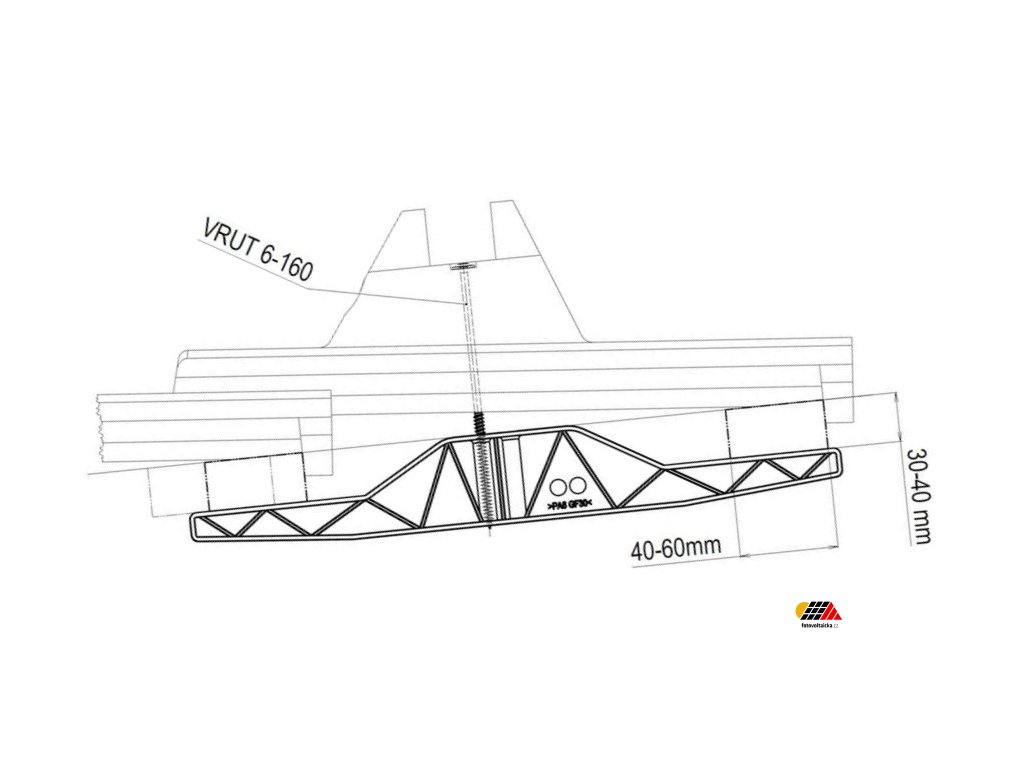 Vzpěra určená pro tašky s konzolou od značky Akusolar a je klíčovým prvkem systému konstrukcí fotovoltaických elektráren na šikmých střechách. Díky materiálu PA GF30 poskytuje vysokou pevnost, tepelnou odolnost a dlouhou životnost. Je navržena pro instalaci na dolní a pravý okraj střešní plochy, což zajišťuje maximální stabilitu.