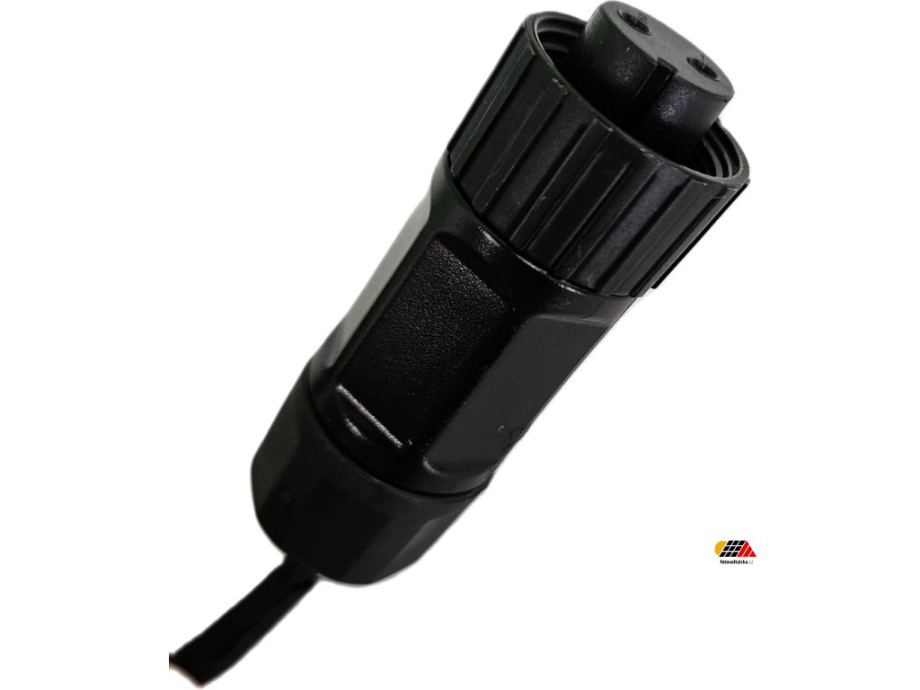 BMS jednotka (HVB750V/100A-EU) značky DEYE pro vysokonapěťový bateriový cluster je standardně napájena s napětím z měniče. Tento 5metrový dvoužilový DC kabel slouží pro nezávislé napájení BMS jednotky z vlastního zdroje a jedná se o volitelné příslušenství. Kabel je na jedné straně zakončen bajonetem k zapojení do BMS a na straně druhé jsou 2 odizolované konce pro zapojení do vlastního 12V DC zdroje.