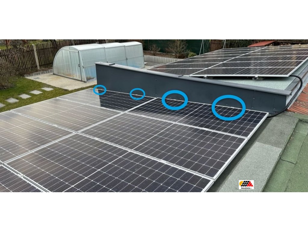 Koncové uchycení má za úkol připevnit poslední solární panel v řadě k hliníkovým profilům s maximální výškou panelu 30 mm. Obvykle se používají dva úchytové body na levé či pravé straně koncového panelu.