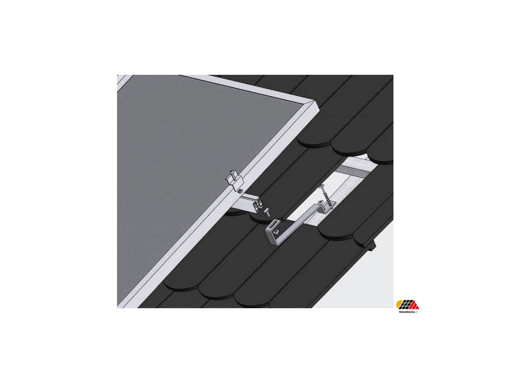 Jednoduchý střešní hák z nerezu A2. Hloubka montážní patky 35 mm. Montáž pomocí dvou vrutů. Maximální překrytí tašek je 240 mm. Drážka 10 mm pro přesné seřízení pozice profilu v rozmezí 40 mm. Tloušťka