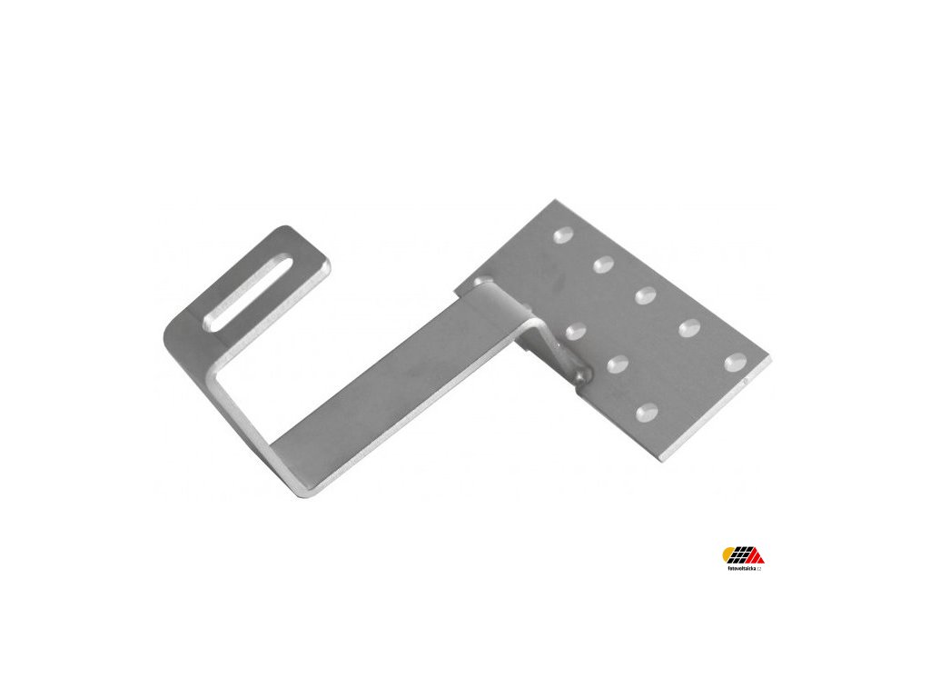 Pevný střešní hák z nerezu A2. Drážka 10 mm pro přesné seřízení pozice profilu v rozmezí 40 mm. Tloušťka materiálu 5 mm.