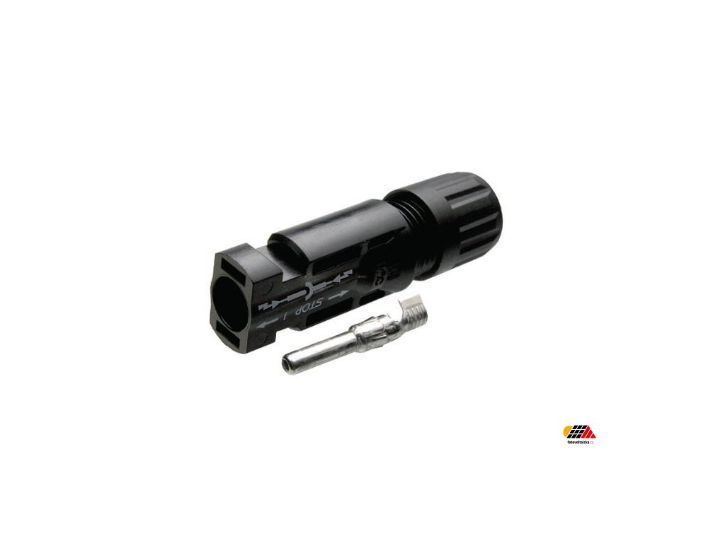 Jednoduchý a bezpečný MC4 male krimpovací konektor určený pro spojení solárních panelů a měničů, do kterého lze zapojit kabel o průřezu 4 až 6 mm2. Díky venkovnímu provedení je konektor odolný také vůči nízkým teplotám a lze jej rychle a snadno nainstalovat pomocí specializovaných nástrojů.