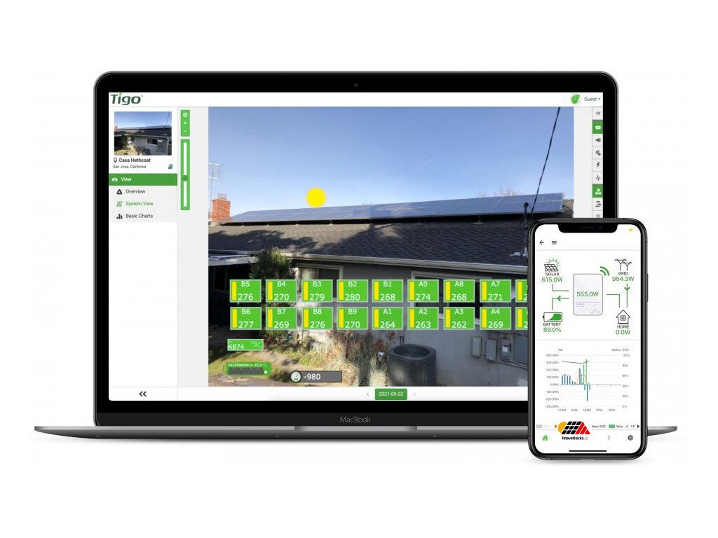 - Použití aplikace Tigo SMART na mobilním zařízení pro rychlé spuštění systému