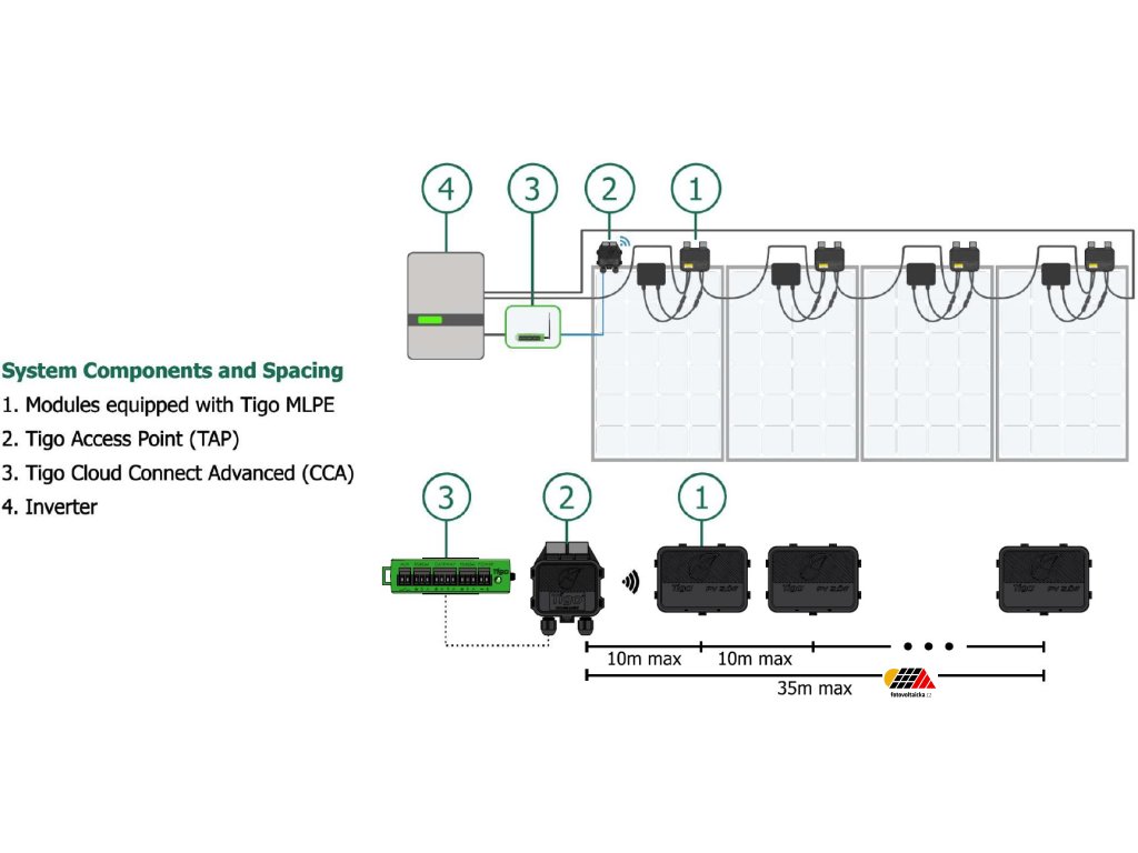 Přístupový bod Tigo Access Point (TAP) je klíčovým komponentem systému pro optimalizaci fotovoltaických modulů , který přijímá data z optimizérů do vzdálenosti 10 metrů a s nejvzdálenější až 35 metrů. V