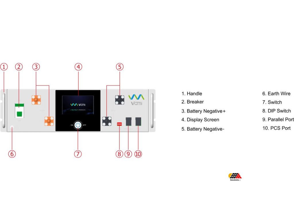 Rackmount LiFePO4 baterie značky VAMI s kapacitou 5,12 kWh je ideální volbou pro domácí a firemní energetické systémy. Životnost více než 6000 cyklů při zachování kapacity nad 70%, maximálnímu vybíjecímu proudu 100 A a samozhášecímu systému poskytuje spolehlivý výkon i při náročném provozu. Ovládání usnadňuje přehledný 4,3" displej, zatímco podpora CAN2.0 a RS-485 zajišťuje širokou kompatibilitu s většinou měničů. Lze paralelně propojit až 16 jednotek pro navýšení kapacity. Určena výhradně pro vnitřní použití.